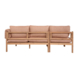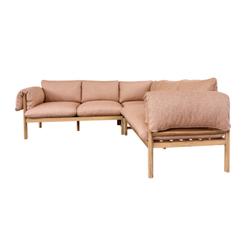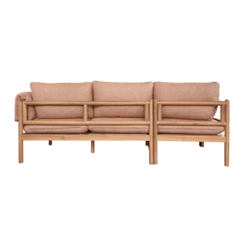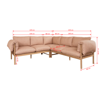 De bank heeft aan twee zijden een zithoogte van 47 cm, zitbreedte 144 cm en zitdiepte 74,5 cm. Het houten frame geeft stevigheid en de volle kussens bieden comfort voor urenlang gebruik.