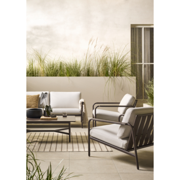 Het stevige metalen frame en de afneembare, wasbare kussens zorgen voor een comfortabele en onderhoudsvriendelijke zitplek.