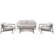 De set bestaat uit een tweezitsbank, twee stoelen en een bijzettafel.