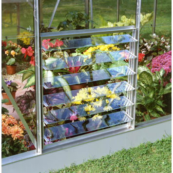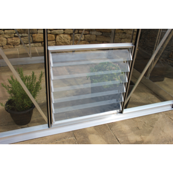 Dit Louvreraam 6L is geschikt voor de tuinkas modellen: Popular, Royal, Magnum, Birdlip, Burford en Blockley. Een louvreraam is een lamellenraam, een aanvulling op de dakra(a)m(en) die al aanwezig zijn in de kas. Een louvreraam is voorzien van verschillende lamellen van glas die in horizontale stand geopend kunnen worden, of in verticale stand overlappen, en daarmee het raam sluiten. Voor een louvreraam is een automatische louvreraamopener optioneel verkrijgbaar. Dit louvreraam is voorzien van veiligheidsglas 3mm (610 x 610 mm) in een blank frame en heeft 6 lamellen. Meestal is er voor het monteren van een louvreraam een extra 'pasruit' nodig!