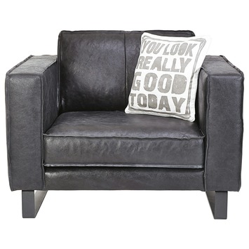 De loveseat fauteuil Long Island is ideaal om in te genieten. Deze echt lederen loveseat fauteuil Long Island zit niet alleen super comfortabel, maar ziet er ook modern uit. Je bent straks niet meer van deze fauteuil af te slaan. De fauteuil is bekleed met oersterk geborsteld pilotenleder (rundsleder) die iets ruw aanvoelt, met een modieuze opengewerkte stiknaad. Het zwarte leder in combinatie met de stoere zwart gemoffelde metalen sledepoten, maken van de loveseat fauteuil Long Island een eyecatcher in elk interieur. De fauteuil Long Island afmeting (bxhxd): 100x82x96 cm, (armleuninghoogte 60 cm, armleuningbreedte 18 cm, zitdiepte 55 cm en zithoogte 45 cm), is er ook in kleur cognac of taupe pilotenleder. Hierbij zijn een 2,5-zits, een 3-zits en een 4-zits bank Long Island verkrijgbaar in de kleuren cognac, taupe en zwart. En om de het geheel compleet te maken is er ook nog een bijpassende pilotenlederen poef Long Island (hxbxl): 35x70x70 cm in de kleuren cognac, taupe en zwart.