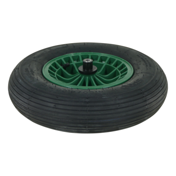 Het Altrad Fort kruiwagenwiel is een luchtbandwiel waarmee je met jouw kruiwagen eenvoudig zware ladingen kan vervoeren. Dankzij het stevige design kan het wiel tot wel 150 kg dragen. Het luchtbandwiel heeft een afmeting van 40x10 cm, een groene kunststof velg en 2ply band. Voor duurzaam gebruik is het wiel rollager vetgesmeerd. Bovendien is het wiel PAK-vrij en voorzien van een Reach certificaat. Dat wil zeggen dat er geen schaddelijke stoffen in het rubber zitten. Kortom, haal het maximale uit je kruiwagen met het Altrad Fort Kruiwagenwiel Groen Kunststof 40x10 cm.