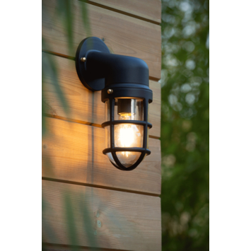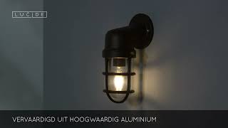 De aluminium bevestigingsplaat van wandlamp Dudley vormt een hoek van 90 graden van de gevel tot aan zijn lichtpunt. De lamp, naar beneden gericht, is omgeven door een glazen behuizing met een aluminium afwerking. Dat aluminium vormt een constellatie van slanke beugels, in een stijl die doet denken aan de verlichting van een klassieke kajuit. De combinatie van materialen en vormentaal breng een retro accent naar de buitenzijde van je woning. Dudley laat zich eenvoudig aansluiten op een dimmer. Zo kies je op elk moment zelf tussen gezellig gedimd of krachtig functioneel licht.