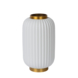 Een retro tafellamp die uitblinkt in zijn eenvoud, dat is Gosse. Het armatuur van hoogwaardig porselein heeft geen boodschap aan opvallende tierlantijntjes of grote kleurcontrasten. De lichtbron is omhuld door een cilinder, die bovenaan en onderaan naar binnen afbuigt. De beide uiteinden zijn afgewerkt met een stijlvol, metalen bandje. Het licht wordt difuus verspreid. Enerzijds gedempt door het geribbelde omhulsel, anderzijds via de open bovenzijde. Met zijn hoogte van bijna 34 centimeter zet Gosse elke uithoek van je interieur snel in de spotlights.