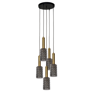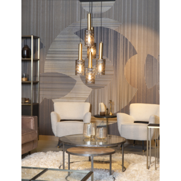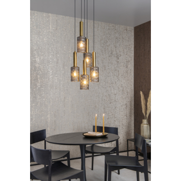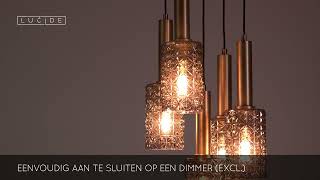 De Lucide hanglamp Coralie is exclusief voor de E27 lichtbron. De plafondplaat heeft 5 lichtpunten, elk in hoogte verstelbaar tot 150 cm. De lampenkap heeft een diameter van 30 cm. Zo kan je zelf variëren in lengtes en een uniform of speels effect creëren. Het glas van de hanglamp heeft een bepaalde structuur en heeft de kleur mat goud / messing. Omdat bij de hanglamp de lichtbron niet wordt meegeleverd, kan jezelf kiezen voor een dimbare lichtbron. Met een externe dimmer kan je deze vervolgens dimmen.