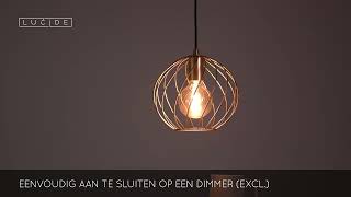 De Lucide Danza hanglamp is exclusief voor de E27 lichtbron. De bolvormige lampenkap bestaat uit gedraaide metalen draden met een open structuur. De hanglamp heeft een mat goude / messing kleur. Omdat bij de hanglamp de lichtbron niet wordt meegeleverd, kan jezelf kiezen voor een dimbare lichtbron. Met een externe dimmer kan je deze vervolgens dimmen. De lengte van de hanglamp kan tot 150 cm in hoogte versteld worden. De lampenkap heeft een diamter van 25 cm.