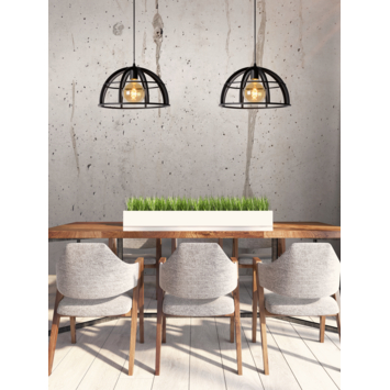 De Lucide hanglamp Dikra is exclusief voor de E27 lichtbron. De hanglamp is gemaakt van hoogwaardig metaal en heeft 2 halfronde open lampenkappen. De horizontale lijnen en de verticale bogen kruisen elkaar op drie punten. Beide lampenkappen hebben een diameter van 40 cm. Omdat bij de hanglamp de lichtbron niet wordt meegeleverd, kan jezelf kiezen voor een dimbare lichtbron. Met een externe dimmer kan je deze vervolgens dimmen. De lengte van de hanglamp kan tot 150 cm in hoogte versteld worden.
