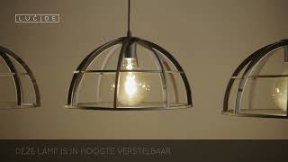 De Lucide hanglamp Dikra is exclusief voor de E27 lichtbron. De hanglamp is gemaakt van hoogwaardig metaal en heeft 3 halfronde open lampenkappen. De horizontale lijnen en de verticale bogen kruisen elkaar op drie punten. Alle drie de lampenkappen hebben een diameter van 40 cm. Omdat bij de hanglamp de lichtbron niet wordt meegeleverd, kan jezelf kiezen voor een dimbare lichtbron. Met een externe dimmer kan je deze vervolgens dimmen. De lengte van de hanglamp kan tot 150 cm in hoogte versteld worden.