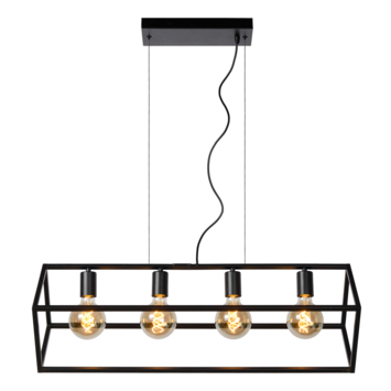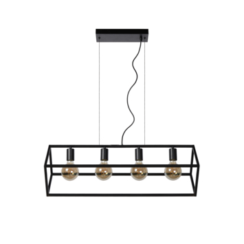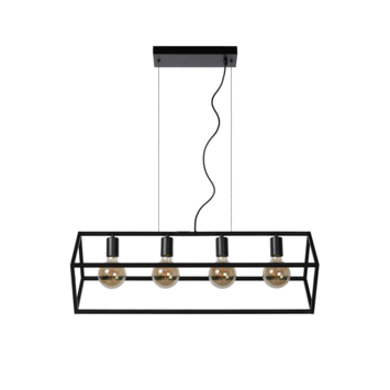 De Lucide Fabian hanglamp heeft 4 lichtpunten exlcusief voor de E27 lichtbron. De hanglamp heeft een kubusvormige, opengewerkte kooi en biedt een mooi zicht op de lichtbron binnenin. De kooi is gemaakt van zwart metaal. Omdat bij de hanglamp de lichtbron niet wordt meegeleverd, kan jezelf kiezen voor een dimbare lichtbron. Met een externe dimmer kan je deze vervolgens dimmen. De lengte van de hanglamp kan tot 161 cm in hoogte versteld worden, voor de rest is de kubus 80 bij 28 cm.