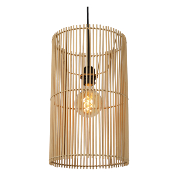 De Lucide Jantine hanglamp is exclusief voor de E27 lichtbron. Rondom het lichtpunt zitten plantaardige bamboe stokken, afgewerkt met zwarte details. Omdat bij de hanglamp de lichtbron niet wordt meegeleverd, kan jezelf kiezen voor een dimbare lichtbron. Met een externe dimmer kan je deze vervolgens dimmen. De lengte van de hanglamp kan tot 175 cm in hoogte versteld worden en heeft een diameter van 26 cm. De hanglamp heeft een cilindervormige lampenkap.