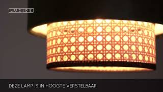 De Lucide Javor hanglamp is exclusief voor de E27 lichtbron. De hanglamp heeft een open structuur van een mix van metaal en rotan. Omdat bij de hanglamp de lichtbron niet wordt meegeleverd, kan jezelf kiezen voor een dimbare lichtbron. Met een externe dimmer kan je deze vervolgens dimmen. De lengte van de hanglamp kan tot 159 cm in hoogte versteld worden. De hanglamp heeft een diameter van 23 cm.