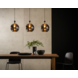 Doordat de bollen afzonderlijk verstelbaar zijn, kun je kiezen voor een strakke opstelling op gelijke hoogte of juist een speels effect creëren met verschillende hoogtes. De open structuur van het glas zorgt ervoor dat de lichtbron zichtbaar blijft, waardoor een filamentlamp extra goed tot zijn recht komt.