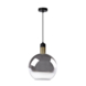 De bol is gemaakt van fuméglas, oftewel donkergetint glas. Daardoor zie je de lichtbron door het glas heen en verspreidt het licht zich op twee manieren: direct naar beneden als downlight en als een zachte gloed door het glas rondom. Dat maakt de lamp geschikt voor zowel functionele verlichting als sfeerverlichting.