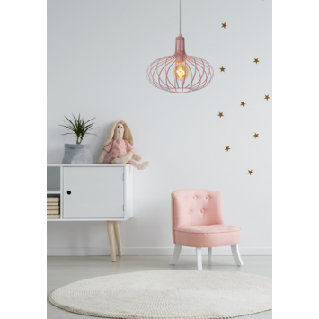 De Lucide hanglamp Merlina is exclusief voor de E27 lichtbron. De lampenkap heeft een diameter van 38 cm. De zachtroze kleur van deze hanglamp verzacht het gebruikte metaal. De vorm van de lamp drapeert zich mooi rond de lichtbron met zijn warm, wit licht. Je monteert deze lamp makkelijk aan het plafond en stelt ze via het snoer af op de gewenste hoogte. Omdat bij de hanglamp de lichtbron niet wordt meegeleverd, kan jezelf kiezen voor een lichtbron.