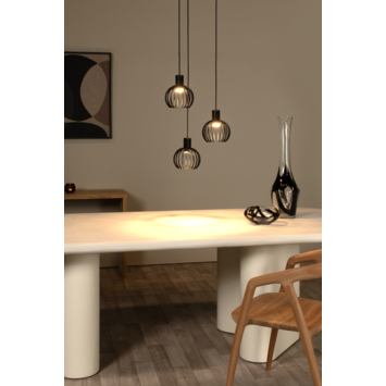Een sierlijke hanglamp waar je niet om heen kunt. Zo omschrijf je Mikaela het best. Deze hanglamp heeft 2 lichtbronnen, elk omhuld door een bolvormige, opengewerkte metalen kap. De filamentlamp laat zich goed zien en duwt zijn licht speels door de dunne spijlen. Mikaela is je ideaal gezelschap aan tafel, bij een leuk etentje of een goed gesprek. Dim zijn licht met een externe dimmer voor een ideaal sfeermoment en stel zijn hoogte in naar wens. Mikaela rekt zich tot wel 190 centimeter uit.
