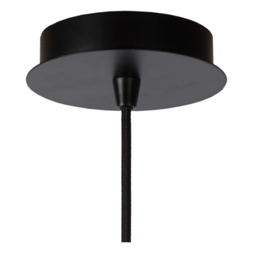 De Lucide hanglamp Wolfram 60W zwart is een opvallende metalen lamp met een diameter van 65 centimeter en een maximale hoogte van 162 centimeter. De lamp is opgebouwd uit een serie ronde metalen vormen die om het lichtpunt heen zijn geplaatst. Deze ringen lijken op elipsen die in beweging zijn en zorgen voor een speels effect zodra het licht aangaat. Door de open structuur zie je de lichtbron goed, waardoor een filamentlamp extra tot zijn recht komt.