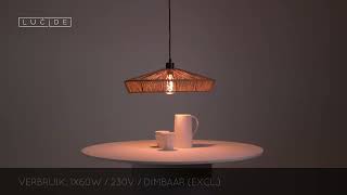 De Lucide hanglamp Yunkai Ø 50 cm 60W natural houtlook is een ronde, gevlochten lamp van papier met een open structuur. De lamp heeft een diameter van 50 centimeter en is in hoogte verstelbaar tot maximaal 145 centimeter. Doordat het materiaal licht is en de kap open is opgebouwd, valt niet alleen de lichtbron op maar ook het snoer krijgt een zichtbare rol in het geheel.