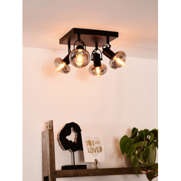Drie is perfectie? In dit geval is het vier. De vier spots van Madee, zo heet deze lamp, zijn volledig draaibaar en kantelbaar waardoor je perfect elk hoekje in de ruimte verlicht. Een modern ontwerp dat twee materialen combineert. De stoere en strakke metalen basis gaat over in een eenvoudige, glazen lampenkap die het geheel extra warmte geeft. Madee is compatibel met vier gewone ledlampen of filamentlampen. Spotjes zijn niet nodig. Wil je nog extra sfeer creëren? Sluit Madee dan aan op een dimmer. Het vierkant van 23 op 23 centimeter is bovendien makkelijk te monteren dankzij de compacte vorm en via het bevestigingsplaatje.