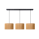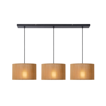 De drie lampen hangen wat dicht bij elkaar, maar verder zijn ze heel mooi. Dor het riet laten ze net een beetje licht door de kap en dat geeft een prettige sfeer. En eenvoudig op te hangen doordat je eerst een stevige plaat aan het plafond maakt.