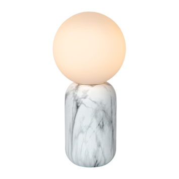 Sierlijke eenvoud met een pittig karakter. Dat kenmerkt Marbol helemaal. De cilindervormige, metalen voet trekt de aandacht door zijn fijne aders. De opalen kop van deze tafellamp accentueert de zachte, afgeronde vormen. Ook al oogt Marbol wat klassiek, deze lamp gedijt in zowat elk interieur en voegt extra cachet toe aan een ruimte. De schemerlamp komt volledig tot zijn recht op een commode, wandkast of bureau. De aan/uit-schakelaar op het snoer bedien je met een vingerknip. Marbol is 15 centimeter breed en 32 centimeter hoog.