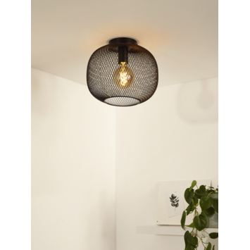 Deze bolvormige plafondlamp kreeg de naam Mesh. Een stalen gaas met een diameter van 30 centimeter vormt zich rond de lichtbron. De plafonnière heeft een vintage uiterlijk en past door haar compacte afmetingen in zowat elke ruimte. Van de woonkamer tot de inkomhal of de slaapkamer: Mesh zet de juiste sfeer. Je bevestigt Mesh aan het plafond dankzij het meegeleverde montageplaatje. Dat zit netjes verstopt onder een omranding in dezelfde kleur als het armatuur. De plafondlamp is ook eenvoudig aan te sluiten op een dimmer.