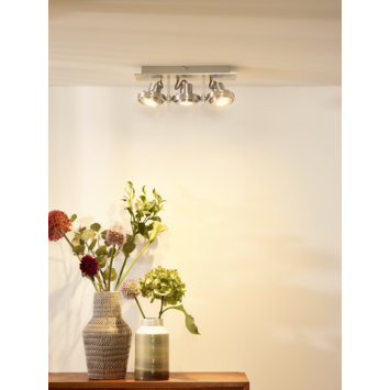 De compacte Triospot Landa II aluminium is een plaat met daarop 3 spots gemonteerd in een moderne aluminium afwerking. De spots zijn richtbaar waardoor je altijd licht hebt op de gewenste plaats, bijvoorbeeld om een object of wand te verlichten of te benadrukken. Daarmee creëer je precies de sfeer waarbij jij je prettig voelt. het armatuur is uitgerust met een GU10 fitting, heeft een maximaal vermogen van 35 watt en wordt geleverd inclusief lichtbronnen. Daarmee is de Triospot Landa II aluminium meteen klaar voor installatie.