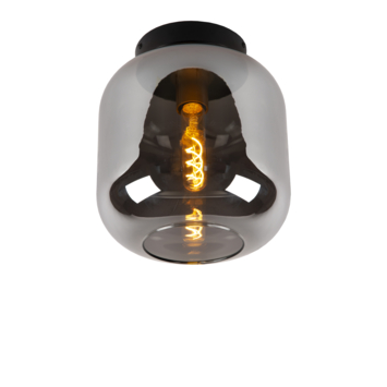 - Compacte plafondlamp met glazen stolp in stijlvol fuméglas