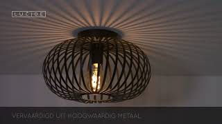 De Lucide plafonnière Manuela 60W zwart is een plafondlamp met een open metalen kooi rondom de lichtbron. De lamp heeft een diameter van 39,5 centimeter en is 23 centimeter hoog. Door het open ontwerp blijft de lichtbron volledig zichtbaar, wat zorgt voor een ruimtelijk effect en een gelijkmatige lichtverdeling in de kamer.