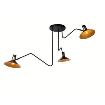 Een vleugje landelijke charme, een toets retro en een speels effect in de ophanging van de lichtpunten. Maak kennis met Pepijn. De drie lampenkappen van deze plafonnière hangen aan de plafondplaat in de vorm van een driehoek. Ze zijn vervaardigd uit hoogwaardig staal waardoor ze ook nog een moderne insteek krijgen. Je hebt wel wat plaats nodig om Pepijn op te hangen. De volledige omtrek bedraagt 108 centimeter en de hoogte 51 centimeter. Vind je het geschikte plaatsje voor deze plafondlamp? Dan haal je met Pepijn een eyecatcher binnen. Met de gouden binnenzijde van de lampenkappen brengt hij nog extra veel warmte in huis ook. Sluit aan op een dimmer voor een optimaal effect.
