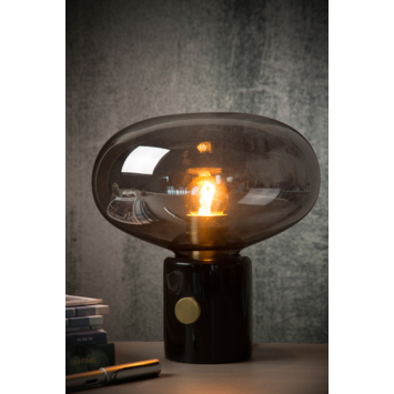 Charlize, een elegante en tijdloze naam voor deze dito tafellamp. De combinatie van een hoogwaardig marmeren voet met amber of smoke glaswerk als kap maakt van Charlize een uniek retrostuk in ieder interieur. Met een geschikte ledlamp brengt ze warmte en gezelligheid in de woonkamer, eetkamer of slaapkamer. De ronde tafellamp met een diameter van 23 centimeter zet je eenvoudig aan en uit met een schakelaar verwerkt in het snoer.