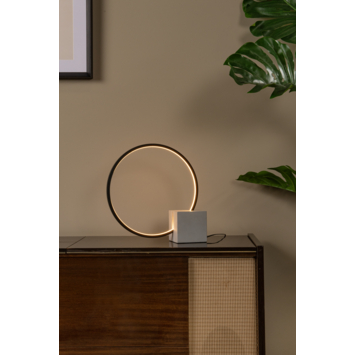 Zoek je een dimbare tafellamp die vooral decoratief is, dan is Cirkelis een uitstekende keuze. De cirkelvormige lamp - what's in a name - combineert speels met een vierkante voet. De cirkel wordt langs zijn binnenste ring verlicht en verspreidt een diffuus licht. Zo leukt deze tafelverlichting je woonkamer, hal, wachtruimte of praktijk op, zonder aan serieux in te boeten. Uitgevoerd in hoogwaardig aluminium is Cirkelis uitgerust met een dimbare, geïntegreerde ledverlichting. Met deze originele tafellamp heb je steeds een gespreksonderwerp voor handen.