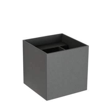Een grijze, strakke doos vol licht voor je muur. Deze kubus van Xio is een modern wandlicht met zijdes van 9,7 centimeter. Het aluminium frame maakt deze verlichting makkelijk te installeren en eenvoudig te verplaatsen. Klein, licht, maar een robuuste verlichting. Deze compacte verlichting is gespierd. Xio is compatibel met led-lampen voor maximaal 4W en een lichtkleur van 2700 K.Het item heeft twee verstelbare lamellen waardoor je de lichtbundel deels kan verstellen. Zo kies je er voor om de bundel evenredig naar boven/beneden te laten schijnen. Enkel naar boven of enkel naar beneden of boven/beneden een smallere bundel en aan de andere zijde een bredere bundel, zijn ook mogelijk. Deze muurlampen met G9-fitting verlichten je slaapkamer en geven een klare, warme kijk op de dingen.