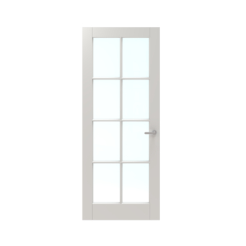 De Lundia binnendeur Frama En 2C05 blank glas wit gegrondverfd stomp 93 x 231,5 cm biedt een klassiek ontwerp met een prachtig symmetrisch glasontwerp. Deze deur is een populair model uit de Frama En-serie en wordt vaak gekozen in Nederland. De bovenste sectie bestaat uit acht glasvlakken, verdeeld door smalle witte roedes. Dit zorgt voor een rustig en ritmisch effect. Dankzij het blanke glas laat de deur veel licht binnen, waardoor hij ideaal is voor ruimtes waar je openheid wilt creëren zonder in te boeten op het ontwerp.