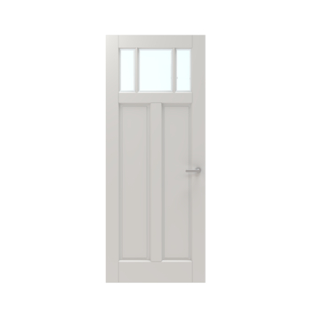 De Lundia binnendeur Frama En 2F02 blank facet glas wit gegrondverfd stomp 93 x 211,5 cm brengt een klassieke charme in je huis met een verfijnde mix van glas en panelen. Deze paneeldeur uit de populaire Frama En-serie heeft een elegant ontwerp dat verticale lijnen combineert met een rustige indeling van glas en hout. Bovenin vind je drie smalle glasvlakken van facetgeslepen glas. Deze laten licht door, maar bieden ook een zekere privacy. Onder het glas bevinden zich twee hoge, smalle verdiept liggende panelen die het statige karakter van de deur benadrukken, zonder de eenvoud te verliezen.
