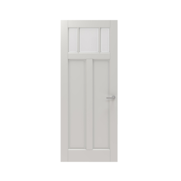 De Lundia binnendeur Frama En 2G02 mat facet glas wit gegrondverfd stomp 93 x 211,5 cm biedt de perfecte mix van licht en privacy. Deze klassieke paneeldeur uit de populaire Frama En-serie heeft een herkenbaar ontwerp met drie smalle glasvlakken bovenaan. Het mat facetglas laat licht door, maar biedt voldoende bescherming tegen inkijk. Ideaal voor ruimtes zoals de hal, woonkamer of werkkamer, waar je helderheid wilt zonder volledig open te zijn.