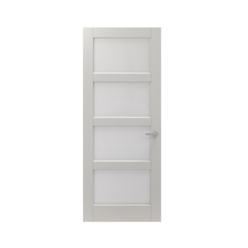 De Lundia binnendeur Frama En 2G04 mat facet glas wit gegrondverfd opdek rechts 93 x 211,5 cm biedt een moderne en rustige uitstraling. Dit populaire model uit de Frama En-serie heeft een ontwerp met vier horizontale glaspanelen, gelijkmatig verdeeld over de hoogte van de deur. Het gebruikte mat facetglas laat licht door, maar zorgt ervoor dat je privacy gewaarborgd blijft. Dit maakt de deur perfect voor ruimtes zoals badkamers, thuiskantoren of gangen waar je wel wat daglicht kunt gebruiken, maar geen inkijk wilt.