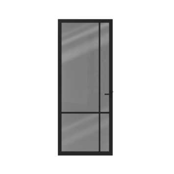 De Lundia binnendeur Lumen En 1E04 rook glas zwart gegrondverfd stomp 88 x 211,5 cm is de perfecte keuze voor een moderne en stoere uitstraling in jouw interieur. Met vier glasvlakken, omgeven door smalle roeden, biedt deze deur niet alleen een strakke look maar ook een industriële flair. Het rookglas zorgt voor een ideale balans tussen lichtinval en privacy, waardoor ruimtes met elkaar verbonden blijven. Deze deur is ideaal voor de woonkamer, eetkamer of kantoor en voegt een stijlvol, ruimtelijk accent toe aan iedere ruimte.