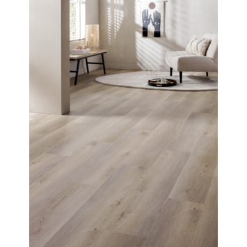 De Lundia click PVC Natuur Lykke rechte stroken lichtbruin houtlook incl. geïntegreerde ondervloer biedt een stijlvolle en warme uitstraling in elke ruimte. Deze vloer is verkrijgbaar per 2,5 m² en bestaat uit 9 lamellen. De lamellen hebben een afmeting van 123,5 cm in lengte en 22,5 cm in breedte met een dikte van 0,5 cm. Het 4-zijdige micro V-groefdesign zorgt voor een verfijnde, luxe afwerking. De vloer is ontworpen voor intensief woongebruik en normaal commercieel gebruik en is waterbestendig, antislip en geschikt voor vloerverwarming met warmwaterbuizen. De toplaag van 0,55 mm biedt optimale bescherming tegen slijtage en is bestand tegen temperaturen tot 27 graden Celsius.