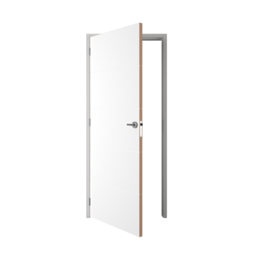 De Lundia deur-kozijn combinatie Tva 2A02 wit gegrond rechts 83 x 211,5 cm (kozijn 56 x 115 cm) brengt deur en kozijn samen in één complete set die mooi op elkaar aansluit. Het gestreepte groefdesign geeft de deur een rustige, moderne uitstraling en maakt hem passend in uiteenlopende interieurstijlen. Door de lichte honingraatvulling voelt de deur prettig aan in dagelijks gebruik.