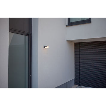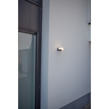 LED-buitenverlichting met buisvormige LED-verlichting met een combinatie van een behuizing van antracietgrijs aluminium en een opaalwit rooster. De beweegbare koppen bieden u de mogelijkheid om 350° te draaien, wat resulteert in een mooie gloed op uw buitenmuur of frontale diffuse lichtstraal. Verkrijgbaar als twee lichte wandlampen of bolders.