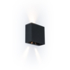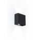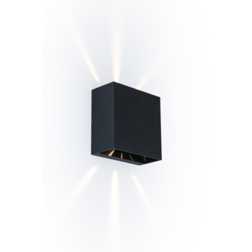 De nieuwe matzwarte Gemini up & down wandlamp; namelijk verstelbare lichtbundels. De ingebouwde mechanische ring met aanpasbare diafragma's kan worden afgesteld op 4 verschillende lichtpatronen. Hierdoor is de buitenlamp naar eigen wens in te stellen en geeft een prachtig lichtpatroon op de buitenwand. Afmetingen wandlamp zijn; hoogte; 12,8 x breedte 12,9 x diepte 7,1cm