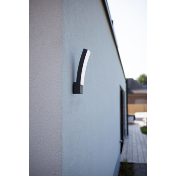 De Lutec Kira buitenlamp is modern, lichtgebogen en frameloos. De buitenlamp heeft een lichtopbrengst tot wel 4000K en is daarom uitstekend om muren, paden en andere ruimtes rondom uw huis te verlichten.