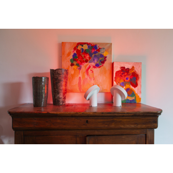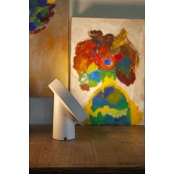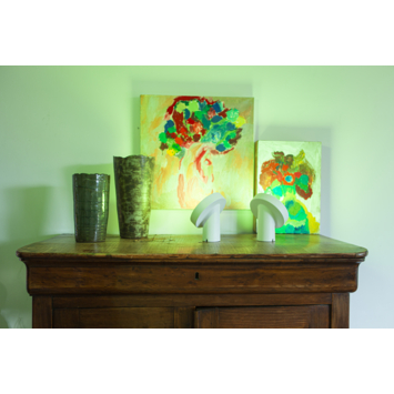 De witte Moa ambiance tafellamp, die een uniek stijlelement toevoegt aan alle ruimtes van uw huis. Voeg licht toe met behulp van de verschillende tinten wit of via een grote keuze aan kleuren. Draadloze bediening is mogelijk via de afstandsbediening of smartphone. Installeer de app om de spraakbedieningsfunctie te activeren.