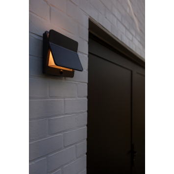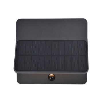 De LUTEC Aleta Solar wandlamp in antraciet is een stijlvolle en krachtige buitenlamp die perfect past in een moderne tuin. Dankzij het geïntegreerde zonnepaneel werkt deze lamp volledig draadloos. Overdag wordt de accu automatisch opgeladen en zodra het donker wordt, geeft de lamp warm wit licht dat zorgt voor een fijne sfeer bij je voordeur, op het terras of langs het tuinpad.