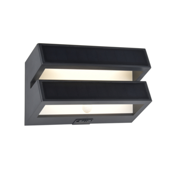 De LUTEC Barlo Solar wandlamp in antraciet is een moderne buitenlamp met een krachtige lichtopbrengst en een strak ontwerp. Dankzij het geïntegreerde zonnepaneel werkt deze lamp volledig draadloos. Overdag wordt de batterij automatisch opgeladen en zodra het donker wordt, schakelt de lamp in en zorgt voor natuurlijk wit licht. Perfect voor aan de schutting, gevel of bij de achterdeur.