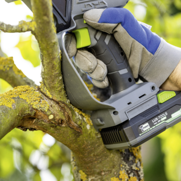 Zaag moeiteloos dikke takken, hout en bouwmateriaal met deze krachtige accu-handkettingzaag. Dankzij de efficiënte brushless motor levert deze zaag optimale prestaties met minder slijtage en een langere levensduur, met maximale kracht.