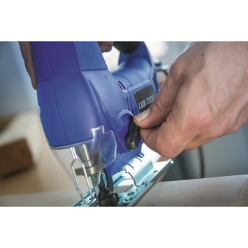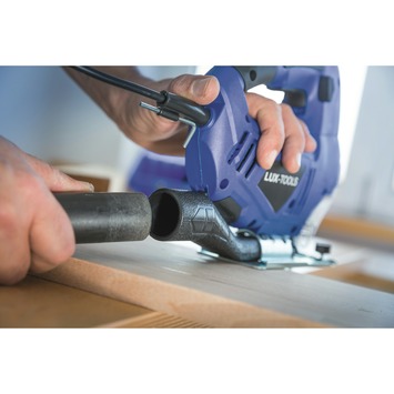 De LUX Decoupeerzaag 550W is een veelzijdige decoupeerzaag voor het zagen in hout en metaal. Met een maximaal vermogen van 550 watt en een snelheid van 800-2600 s.p.m. zaagt de decoupeerzaag vakkundig door hout tot 65 millimeter en metaal tot 6 millimeter dikte. De parallelgeleider maakt het makkelijker om lange rechte stukken te zagen. De zaag heeft een aansluiting voor T en U-zaagbladen en heeft een 3-traps pendelactie.