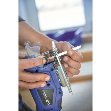 monteren en verwisselen van een decoupeerzaagje is heel eenvoudig. Gebruikt voor laminaatvloer. Zeer tevreden over deze