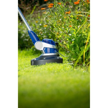 De LUX elektrische grastrimmer E-RT 550W maakt jouw tuinklus een stuk eenvoudiger. De trimmer is voorzien van een steel van 97 centimeter lang en heeft een maaibreedte van 27 cm. De krachtige 550 watt motor zorgt ervoor dat je lang en effectief kan trimmen. De trimmer heeft een verstelbare handgreep, een draaibare snijkop en een plantenbeschermbeugel, die extra bescherming biedt tegen ongewenst trimmen van bloemen en planten. De trimmer is tevens voorzien van een 22 cm lang telescopisch handvat, zodat fysieke verschillen kunnen worden gecompenseerd. De trimmer wordt geleverd inclusief een 4 meter lange dubbele spoel met automatische transmissie. De LUX elektrische grastrimmer E-RT 550W is een aanwinst voor elke tuinier.