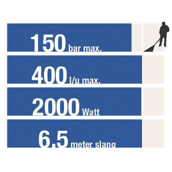 De LUX Hogedrukreiniger HD-150/2000 met Total-Aqua-Stop-Systeem is een sterke en robuuste allrounder. Perfect voor middelgrote tot grote schoonmaak en het aanpakken van sterke vervuiling. De HD-150/2000 is ideaal voor tuinmeubilair, voertuigen en fietsen, en alle gebieden rond het huis. Ook het reinigen van grotere oppervlakken zoals je terras gaat met de LUX Hogedrukreiniger HD-150/2000 snel en eenvoudig dankzij de grote Patio Cleaner voorzien van een lans met verstelbare sproeier. De ergonomische pistoolgreep zorgt ervoor dat u moeiteloos en onvermoeibaar aan de slag kunt.